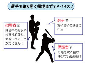 ●標準コース ・体力をつける(1時間3回/1年) 大事なエネルギー源である炭水化物の摂取について、高校球児の必要量をもとに学びます。