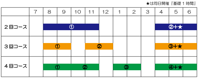 1年生対象の「栄養基礎1時間」をご受講いただけますので、実際のご受講回数は「コース名+1回」となります。